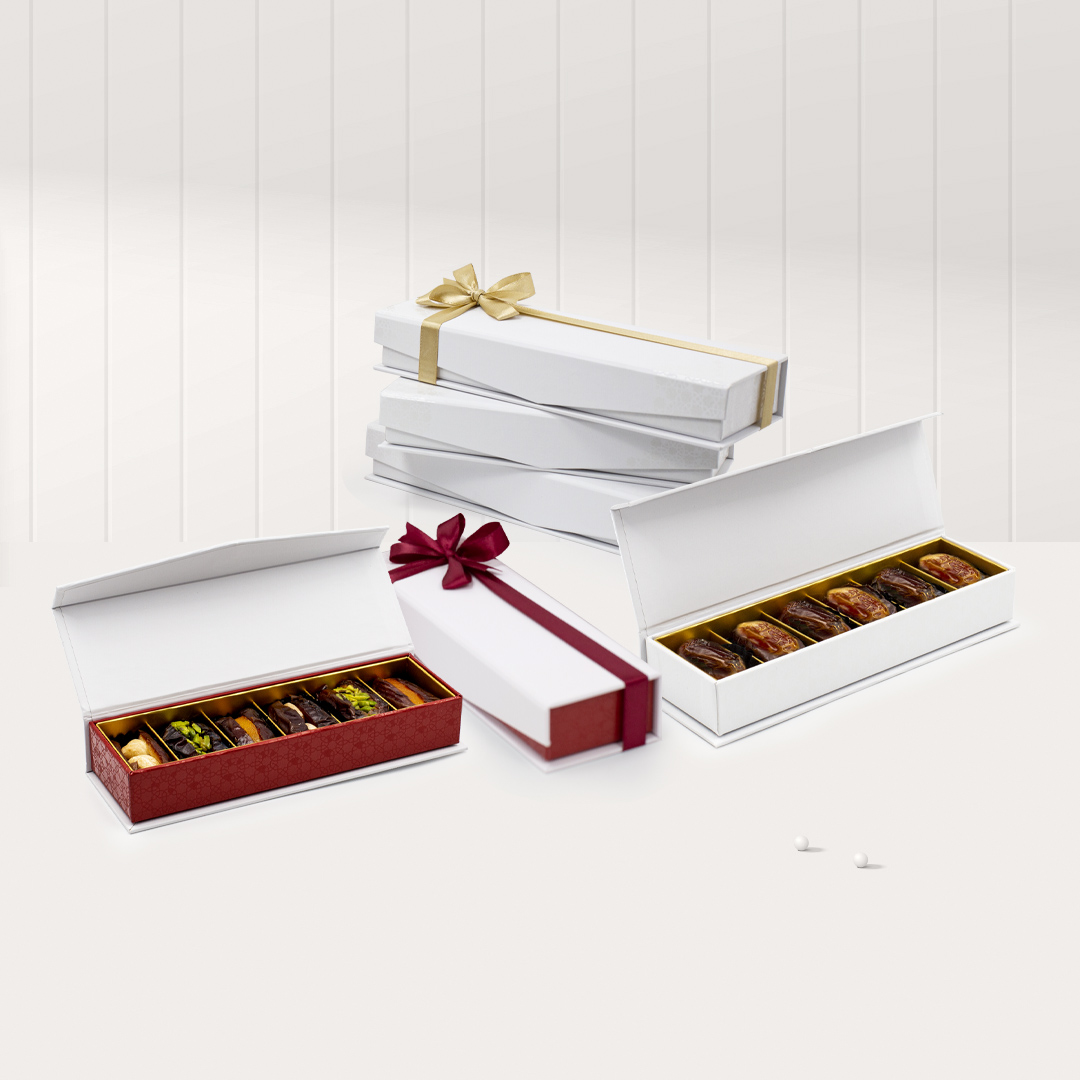 We specialize in crafting custom-branded boxes tailored to your needs—whether you’re looking for small paper boxes for 1 or 2 dates, long boxes for 4, 6, or 8 dates, or premium boxes for 16 or 20 dates, we design and brand them to perfectly complement your hotel’s branding guidelines, theme and requirements.